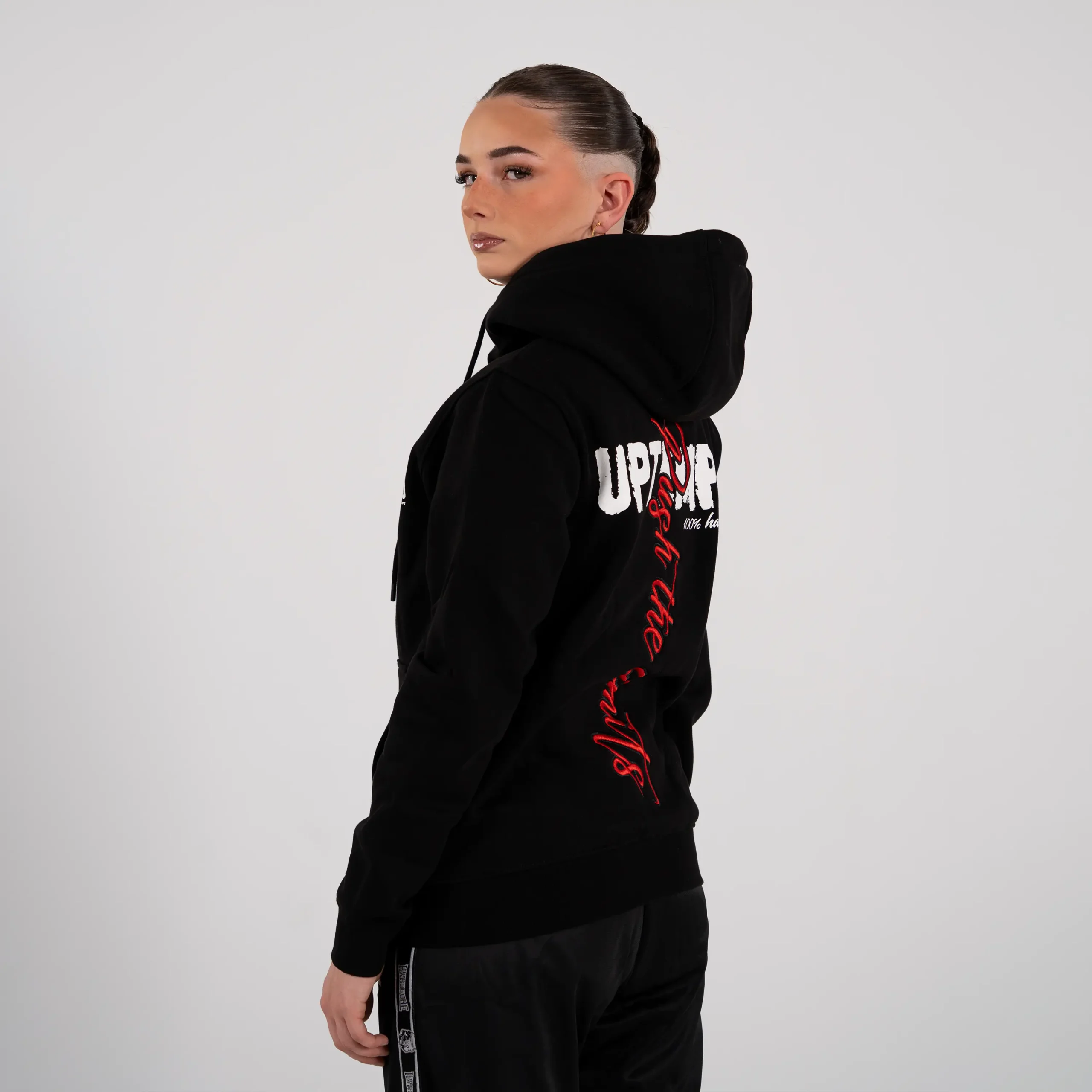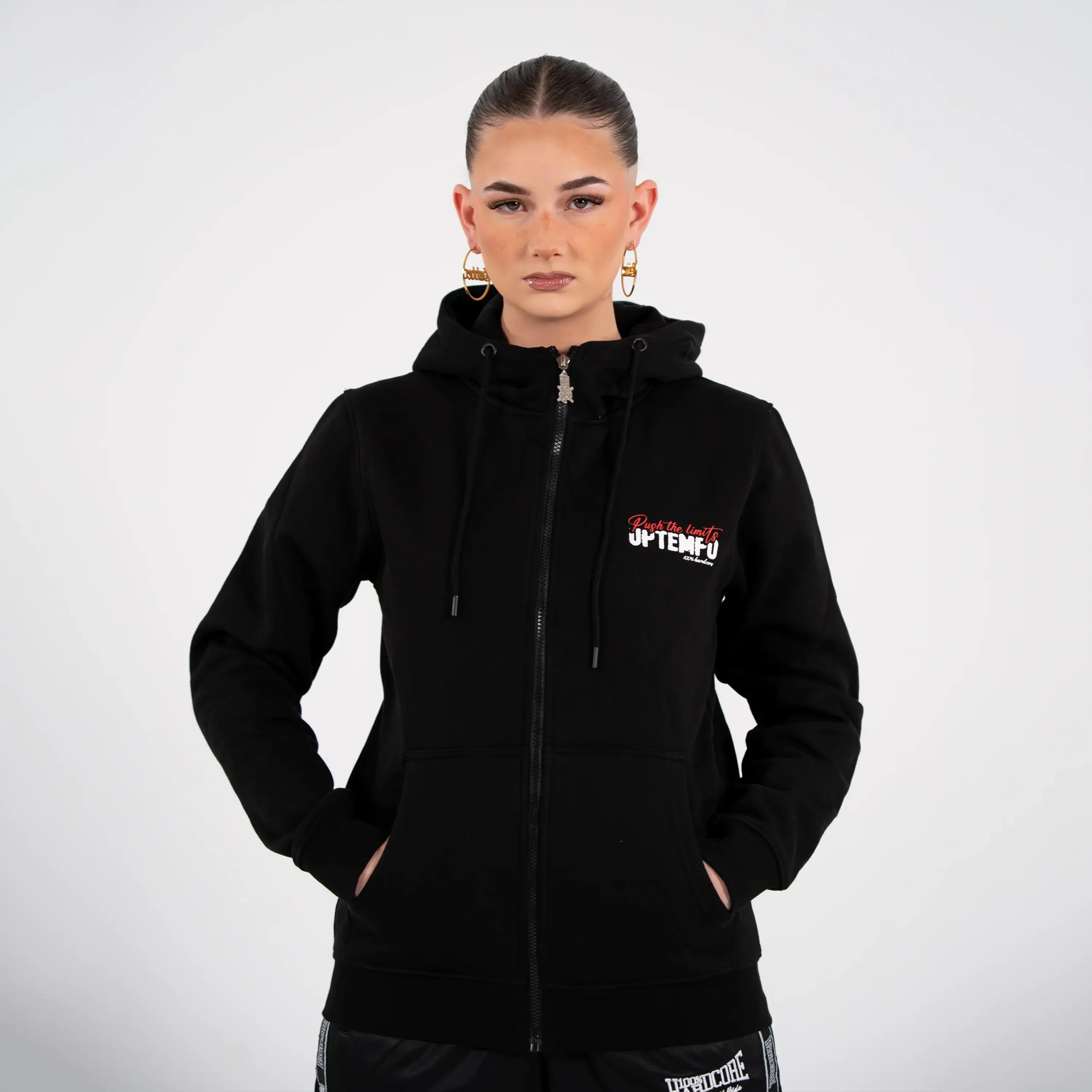 Stay warm and represent the Uptempo lifestyle with the Hooded Zipper Signature. This comfortable zippered hoodie features an eye-catching logo on the front and signature Uptempo branding on the back. Made from soft, high-quality materials and finished with a durable zipper, perfect for festivals, training or everyday wear.
