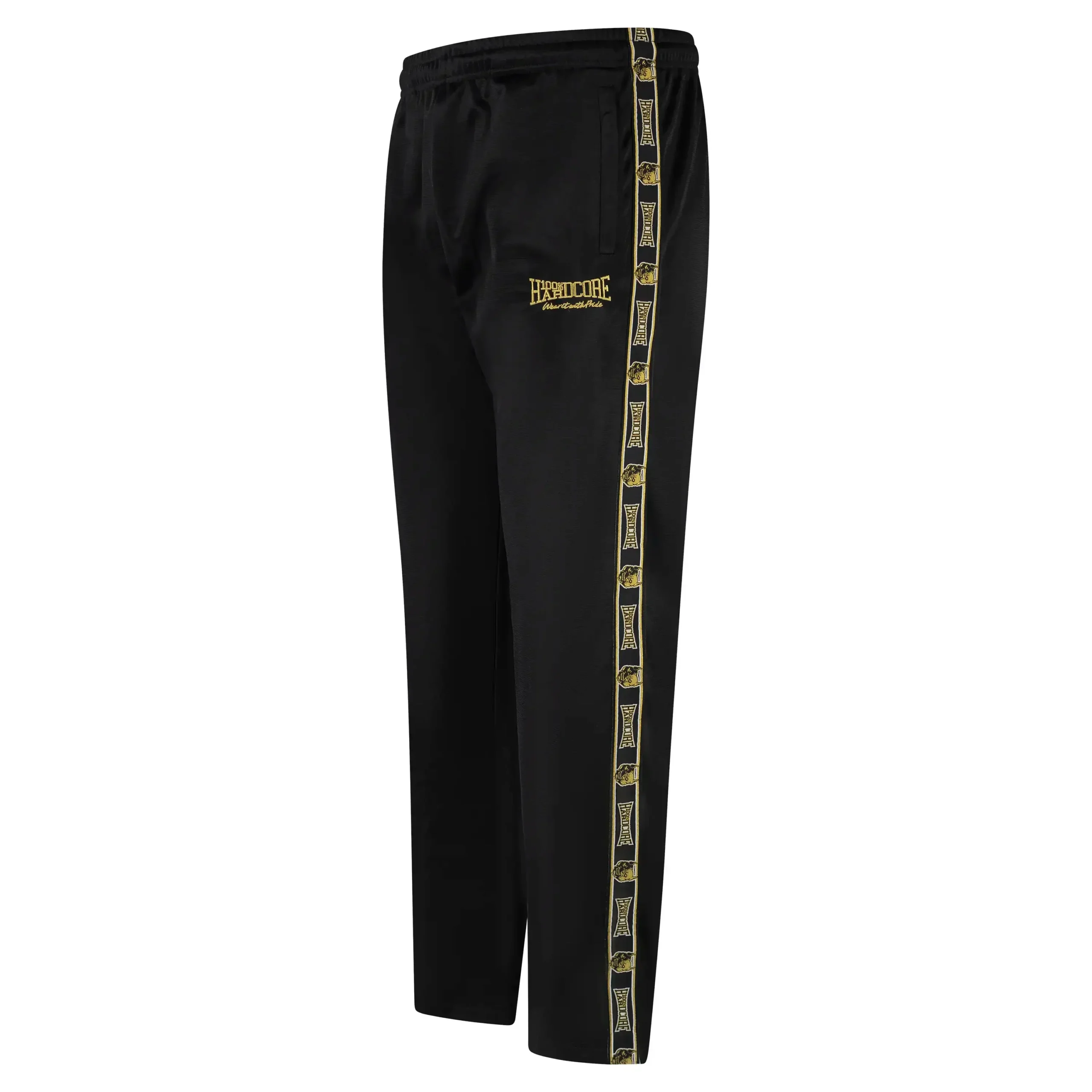 Le pantalon d'entraînement 100 % Hardcoreest conçu pour offrir confort et liberté de mouvement. Fabriqué dans un tissu extensible amélioré, il offre un ajustement parfait et un style robuste avec des bords tissés sur les côtés et des fermetures éclair détaillées avec logo. Avec deux poches zippées sécurisées et une coupe unisexe régulière, ce pantalon est parfait seul ou associé à la veste assortie.