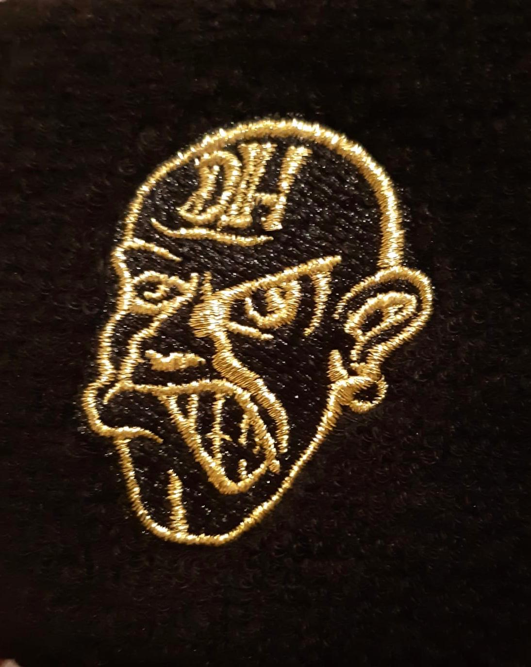 Chauffe-pouce cool des Early Hardcore Heroes DARK HEADZ de Suisse - Logo brodé en grand en or