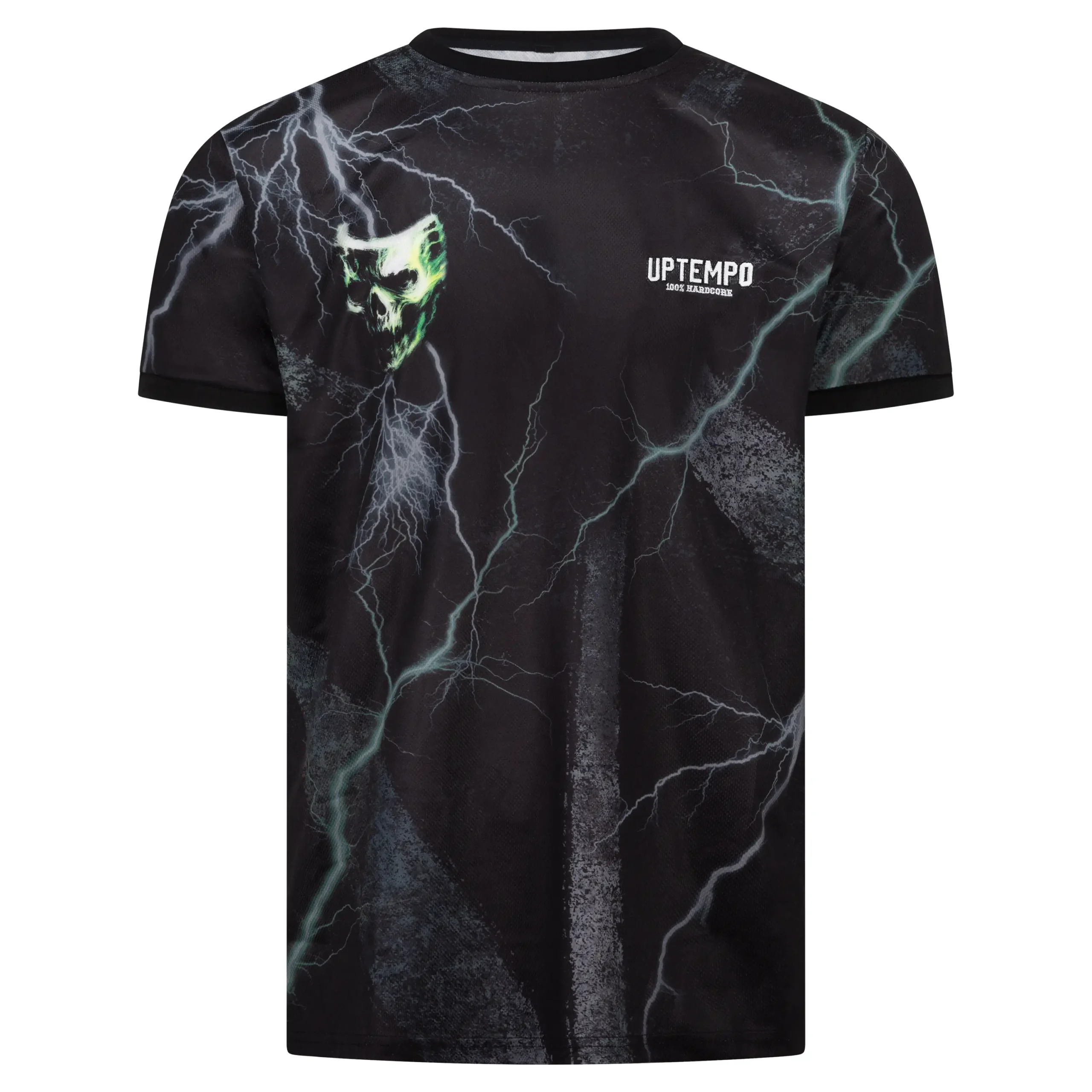 Le maillot de football "Uptempo Skullstorm" allie le confort à un design continu et énergique. Fabriqué dans un matériau léger et respirant, il présente des effets d'éclairs frappants sur l'ensemble du maillot, un logo Uptempo puissant sur le devant et un graphisme de tête de mort chargé d'éclairs accrocheur dans le dos. Une véritable pièce de déclaration pour tout fan d'Uptempo.